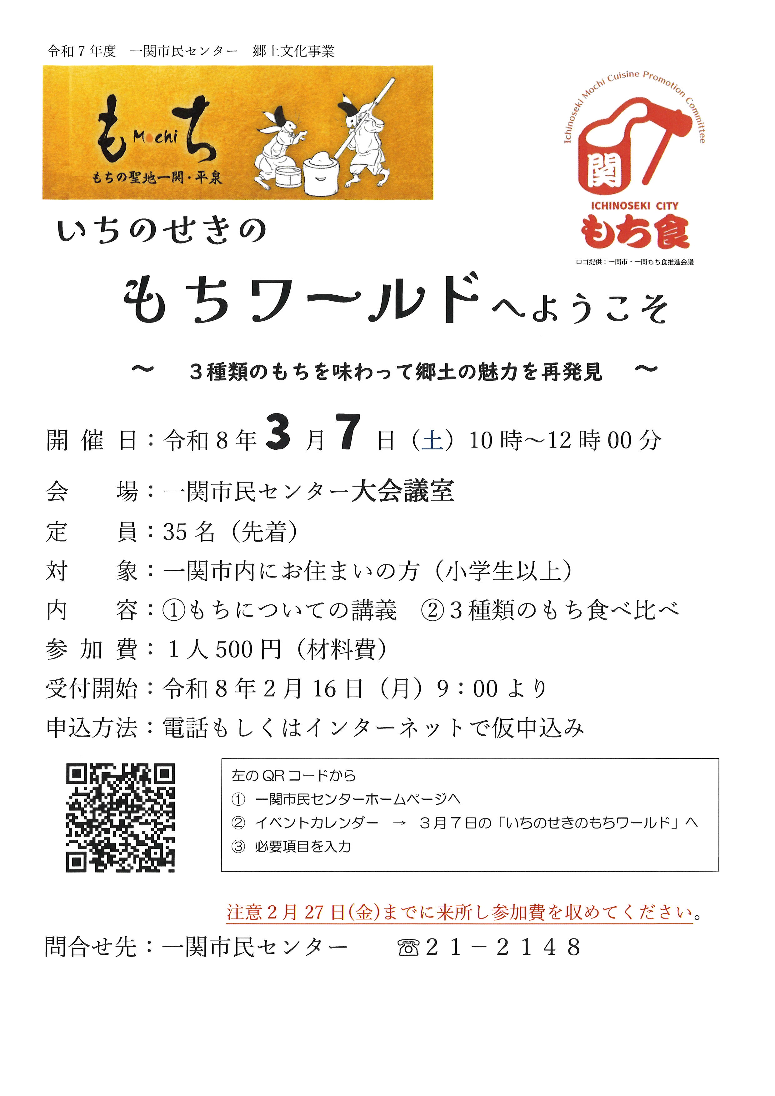 内 容:①もちについての講義②3種類のもち食べ比べ